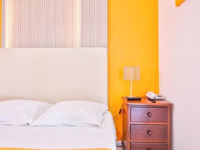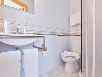 Este quarto apresenta uma decoração tradicional em vários tons, assim como televisão por cabo e mobiliário em madeira. A casa de banho dispõe de um chuveiro. Pisos superiores acessíveis apenas por escadas.
